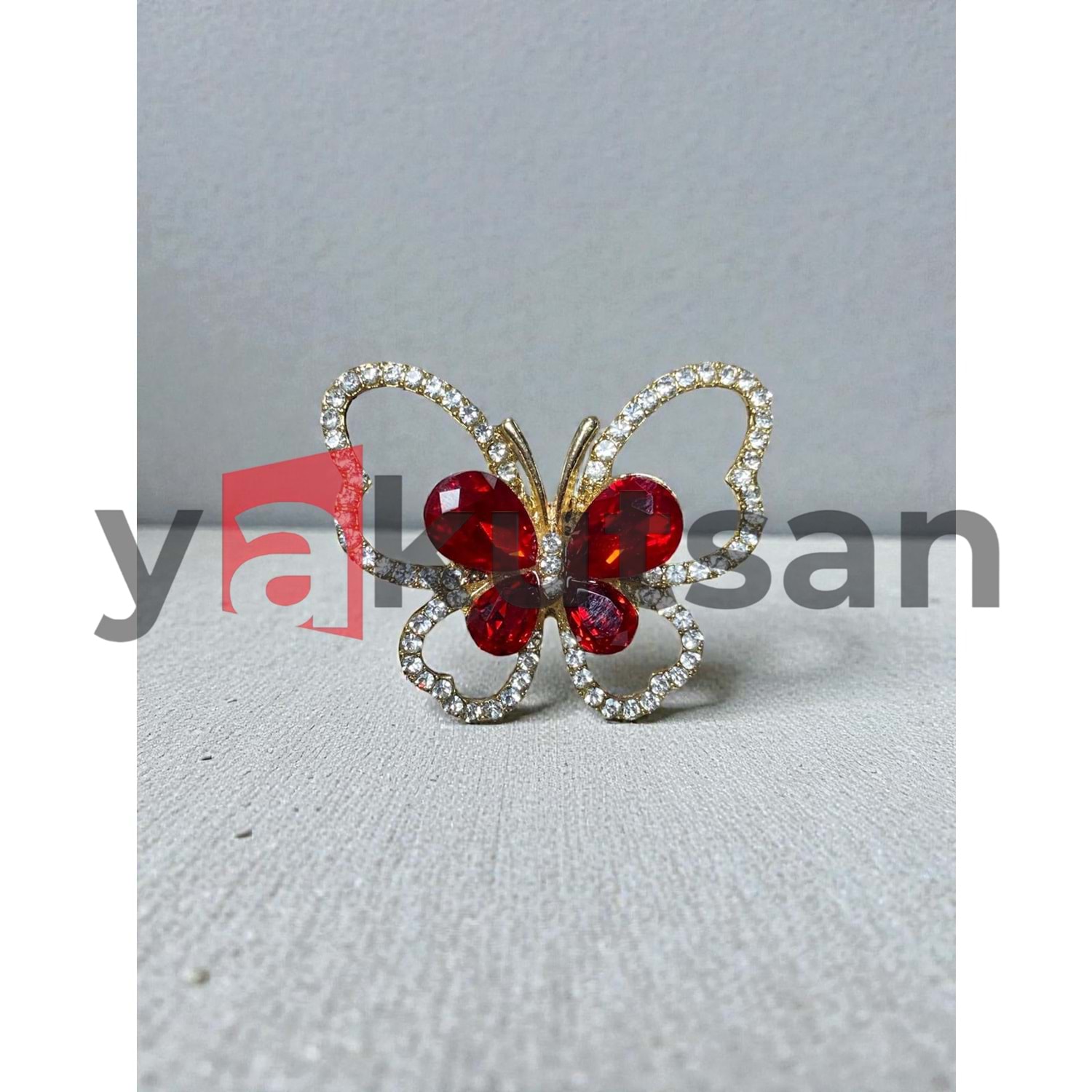 KELEBEK DETAY KRİSTAL TAŞLI BORDO KADIN BROŞ